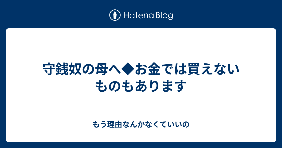 守銭奴の母へ お金では買えないものもあります もう理由なんかなくていいの