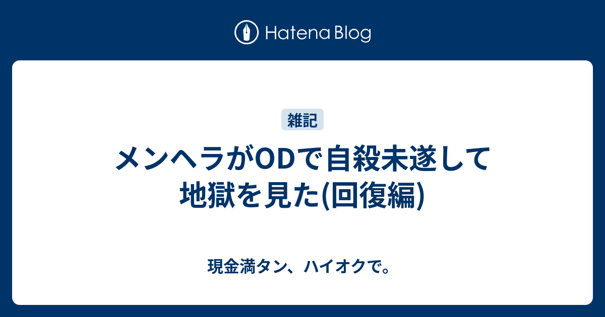 メンヘラがodで自殺未遂して地獄を見た 回復編 現金満タン ハイオクで