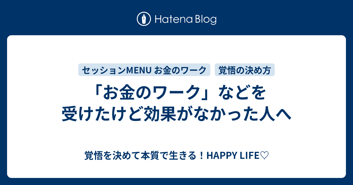 お金のワーク などを受けたけど効果がなかった人へ 覚悟を決めて本質で生きる Happy Life