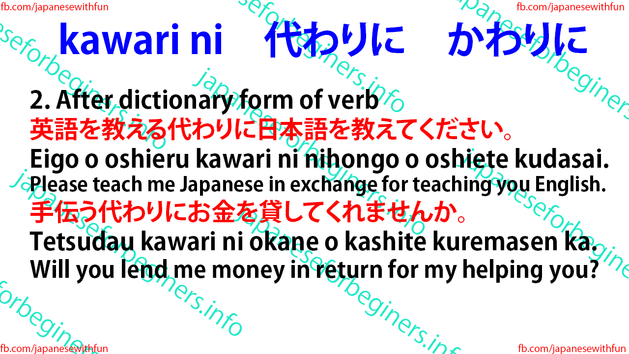 Japanese For Beginners Kawari Ni 代わりに かわりに