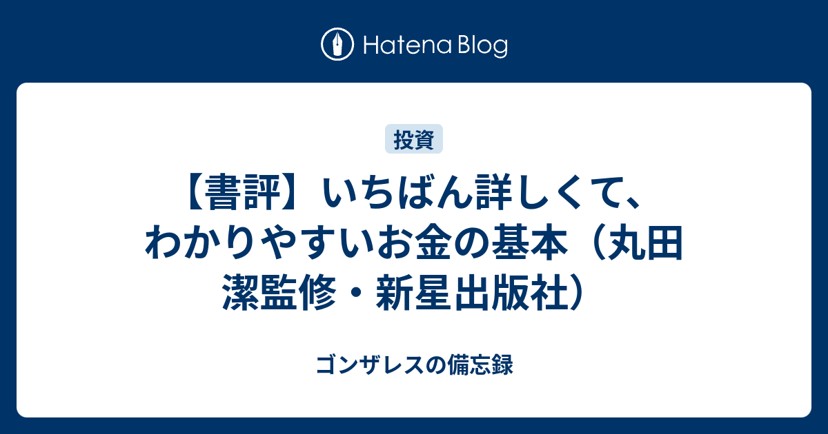 書評 いちばん詳しくて わかりやすいお金の基本 丸田 潔監修 新星出版社 ゴンザレスの備忘録